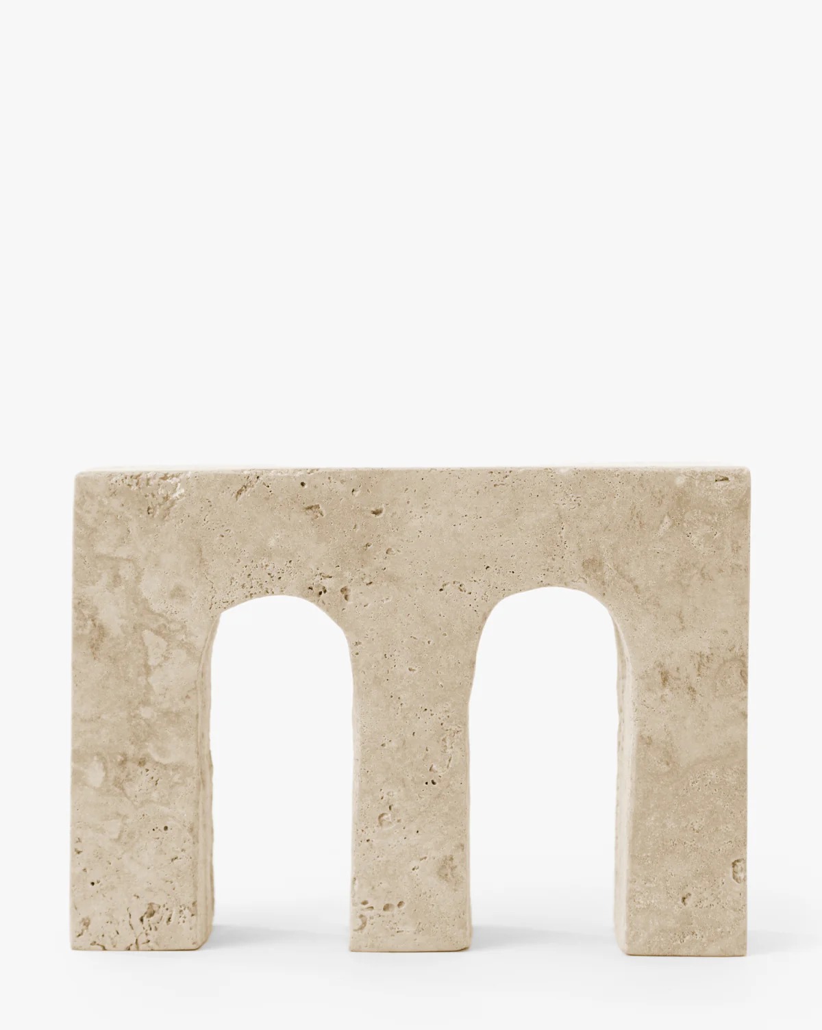 A sculptural form crafted from travertine marble, our Arteron Object adds a touch of sophistication to any console, coffee table, or bookshelf. The two archways bring a sense of classic elegance, while the natural veining of the smooth marble lends to a refined yet organic minimalist feel. Sleek yet timeless, it complements a range of interior styles and is a beautiful addition to your vignettes.